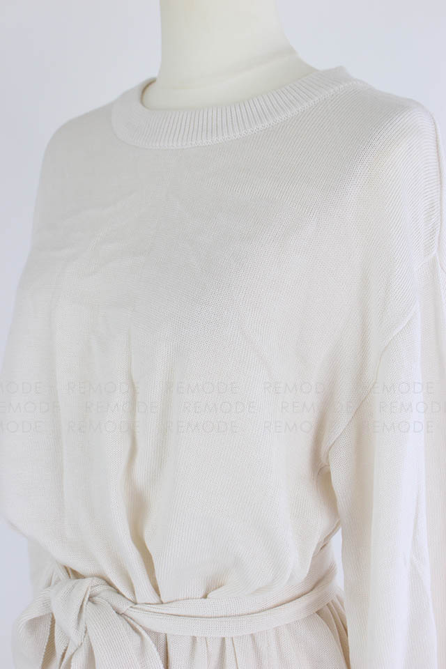 - ドレープを効かせたバックオープンデザインがこなれ感漂うニットワンピースとスリットリブニットパンツの2点セットアイテム。ウエストリボンは取り外し可能なので、きゅっと結べばメリハリ良く着こなせ、それぞれ異なる雰囲気をお楽みいただけます。上下別々に着まわしても◎な万能アイテム。お出掛けコーデも仕上がる着回し抜群なアイテムです。