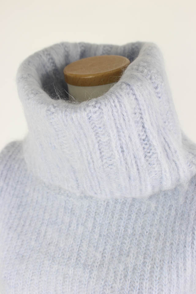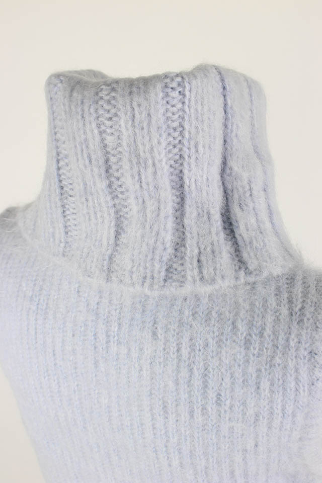 - ハイネック部分がボリュームがあるので、小顔効果抜群のニット。ふんわりとしていて甘めなので、デートシーンなどにもオススメです。