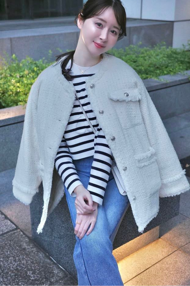 ZARA|ツイードノーカラージャケット ビジューボタン |小沼瑞季